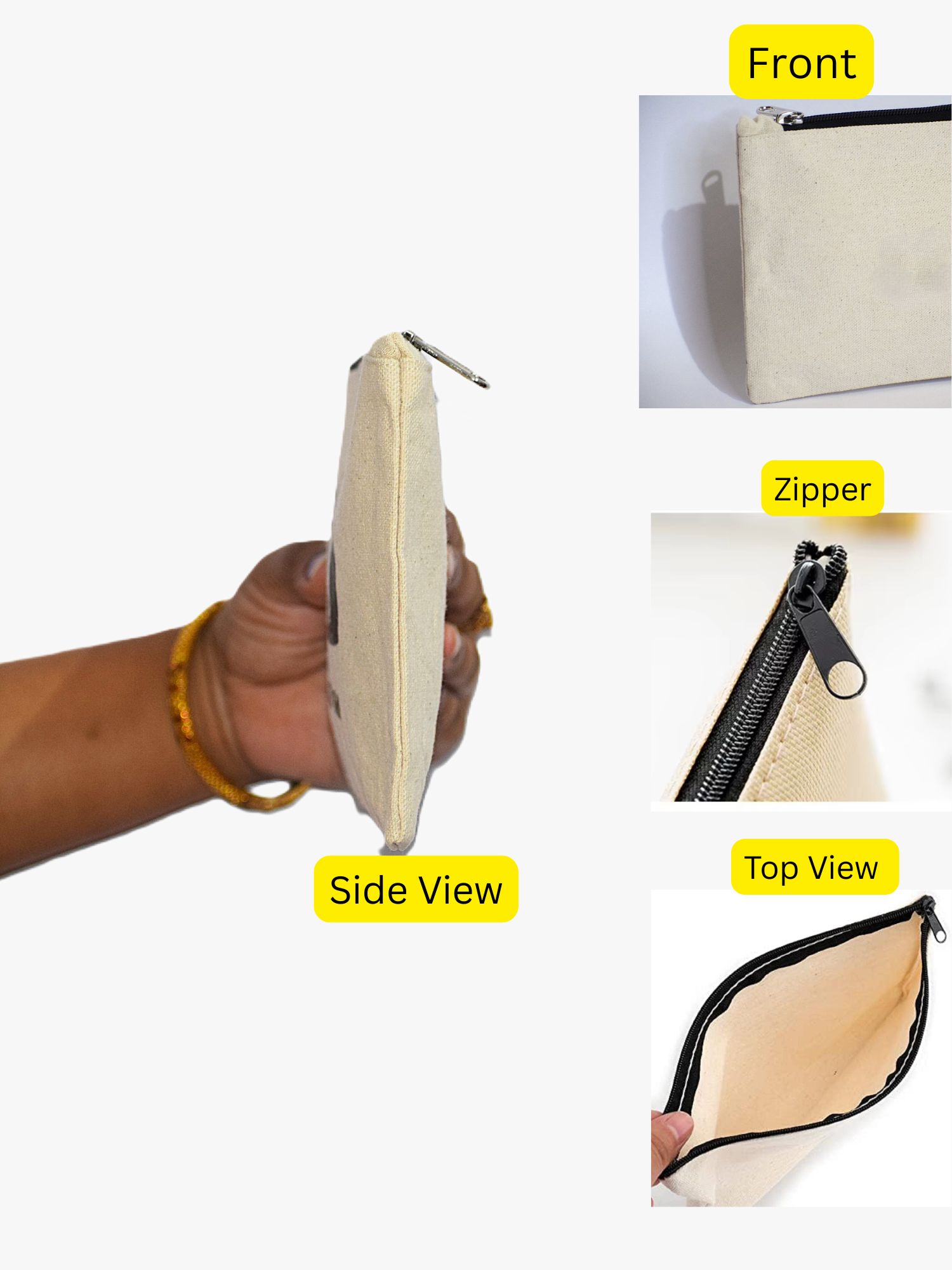 Made with 100% Cotton Canvas, this pouch is a greener and sturdier alternative to regular Plastic or cloth pouches. Designed for conscious consumers, it offers a minimalist aesthetic with a powerful eco-impact 🌍.